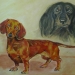 Golden retrievers in het riet.